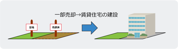 不動産を負担なく維持し、節税する方法のひとつとして「資産組み換え」があります。たとえば、土地の一部を売却して、そのお金で賃貸住宅を建てたり、維持しやすい違う土地に賃貸住宅を購入するなど、収益を上げられる不動産に組み換えていく方法です。売却代金を元手にすれば借り入れせずにすむ場合もあり、形を変えることで節税対策することもできます。